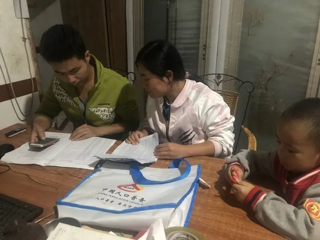 ▲夫妻俩晚上在家商讨人口普查工作
