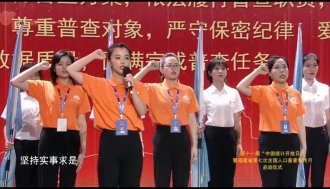 9月,罗兰带领着水部街道普查员作为福建省25万名人口普查的“两员”代表参加福建省中国统计开放日现场活动并进行庄严宣誓。